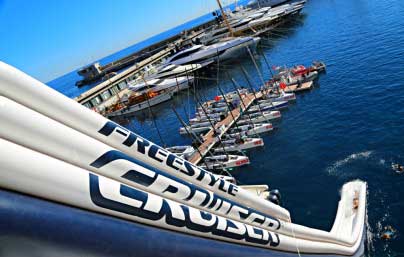 Check out the debut of the new YCM Cruiser at the Monaco Yacht Club. 16 meters tall, it’s the largest inflatable water slide in the world.