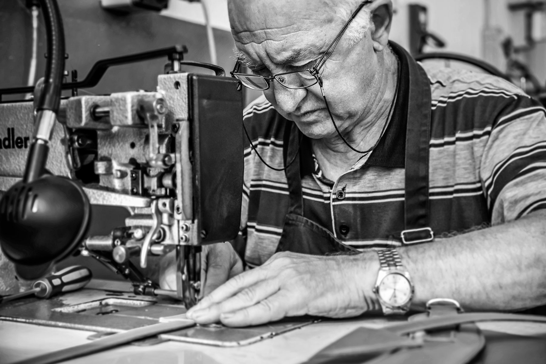 “Every hide comes from an individual animal and is slightly different, which makes it almost impossible to automate certain processes,” Marco says. “At the end of the day, we’re not in the volume business of making products by machine. We’re in the luxury business of making products by hand.”