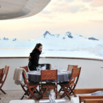 During an endless, soft pink summer night when the sun never sets, with a view of Mount Français—one of the highest mountains on the Antarctic Peninsula—and a group of killer whales in the distance, I raise my glass of crisp sauvignon blanc. Legend, the only ice-breaking luxury charter yacht in the world, has brought me to this most hard-to-reach region, where the 254-footer (77.4-meter) feels completely in her element. Legend looks like an elegant and classic superyacht but charters like an explorer yacht on steroids: sleek and dark with teak decks, yet home to a commercial helipad, a submersible for three guests, personal watercraft and snowmobiles.