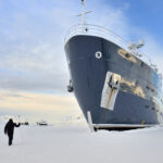David De VleeschauwerLate one afternoon, Legend nestles into a thick patch of ice in a remote bay. There’s no wind. The water is like a silver platter with the only ripples formed by minke whales feeding under the ice sheet and seals playing around the floe edge.