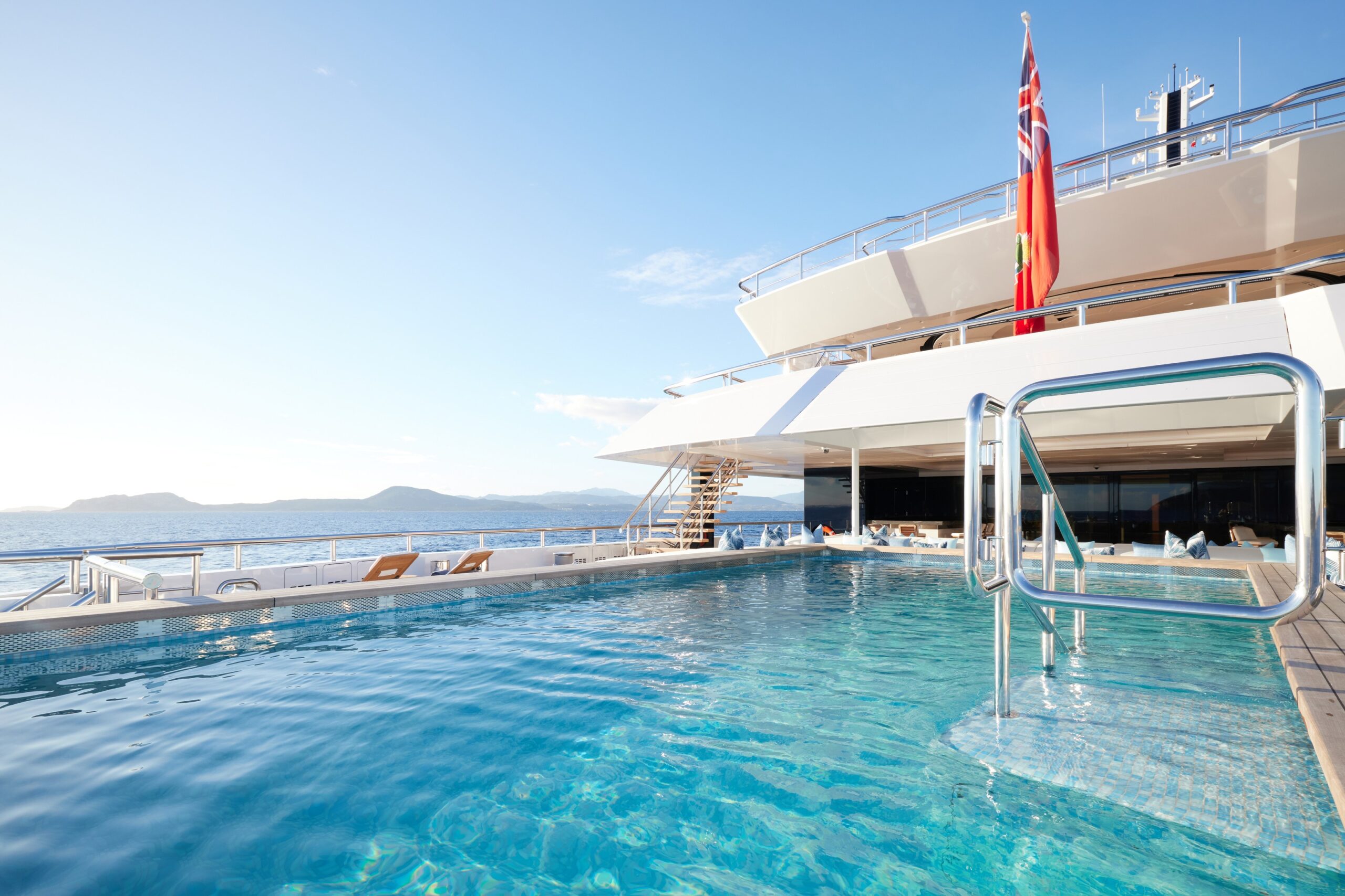“There was a lot of debate about where to draw the line, but ultimately it was a decision based on the perceived value for the guests and the owners,” says Simon Rowell, creative director at the design firm. “After all, the superstructure is what guests come into daily contact with when they’re on board. When we first saw the unfaired hull in the shipyard we were pleasantly surprised, so it was the right call.”