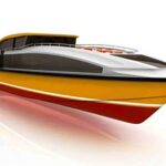 The world-renowned Nuvolari Lenard design team has been supporting a post-graduate masters program for yacht and ship architecture at the IUAV in Venice for several years. Carlo Nuvolari, Dan Lenard and Valerie Zannier all teach at the school. Giovanni Crosera, a recent IUAV graduate, was an intern at Nuvolari Lenard’s design firm for three months. For a master’s thesis, he tackled a fast-transfer passenger boat to take tourists from Venice’s airport to the city center. Sleek and stylish, this 75-foot boat is more than mere transportation. Crosera chose diesel/electric propulsion to help protect the waters of the Grand Canal and provide the necessary speed to bring passengers to the airport without delay. It would be a great addition to Venice’s famous waterways.