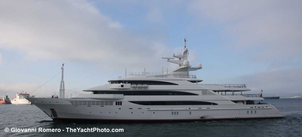 Luxury full-displacement yacht Amevi is another member of Oceanco’s innovative fleet. Built with steel hull and aluminum superstructure, she owes her sleek silhouette to the design team of Nuvolari & Lenard, and her interior to Alberto Pinto. Occasionally available for charter, the yacht has six decks affording 12 guests enormous space for entertainment and relaxation.