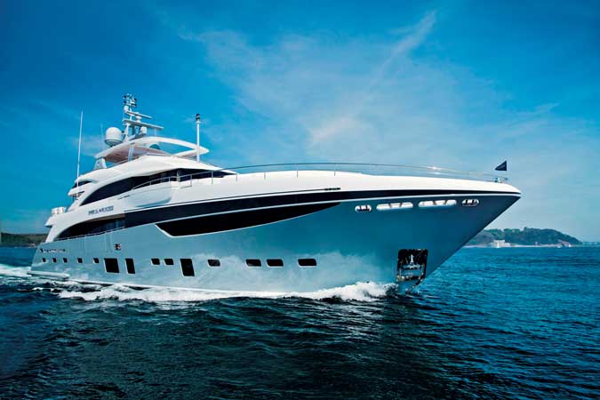 This new 131-foot yacht reigns as the largest resin-infused production yacht launched in Britain. The hull may be production (and Hull Nos. Two and Three are already under construction), but the interior is custom designed for each owner. Imperial Princess, Hull No. One of the 40M series, features a five-cabin layout with an ondeck master.