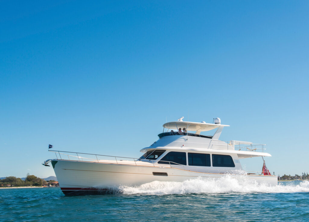 The Sirena 64 has megayacht-style features and a hull designed for economical and fast cruising.