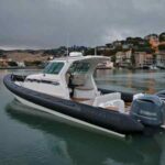 As Peterson cruised us around the bay to show us the America’s Cup course, we poked around the San Francisco waterfront and then zoomed under the Golden Gate Bridge to experience the wave and current action. Then we cruised out to Sausalito and Belvedere. And low and behold, in davits in front of a half a dozen of the finest waterfront homes there were several Protectors hanging at the ready. The Protector is guaranteed to protect against the elements and provides a fun way to get around the bay. Join the club.
