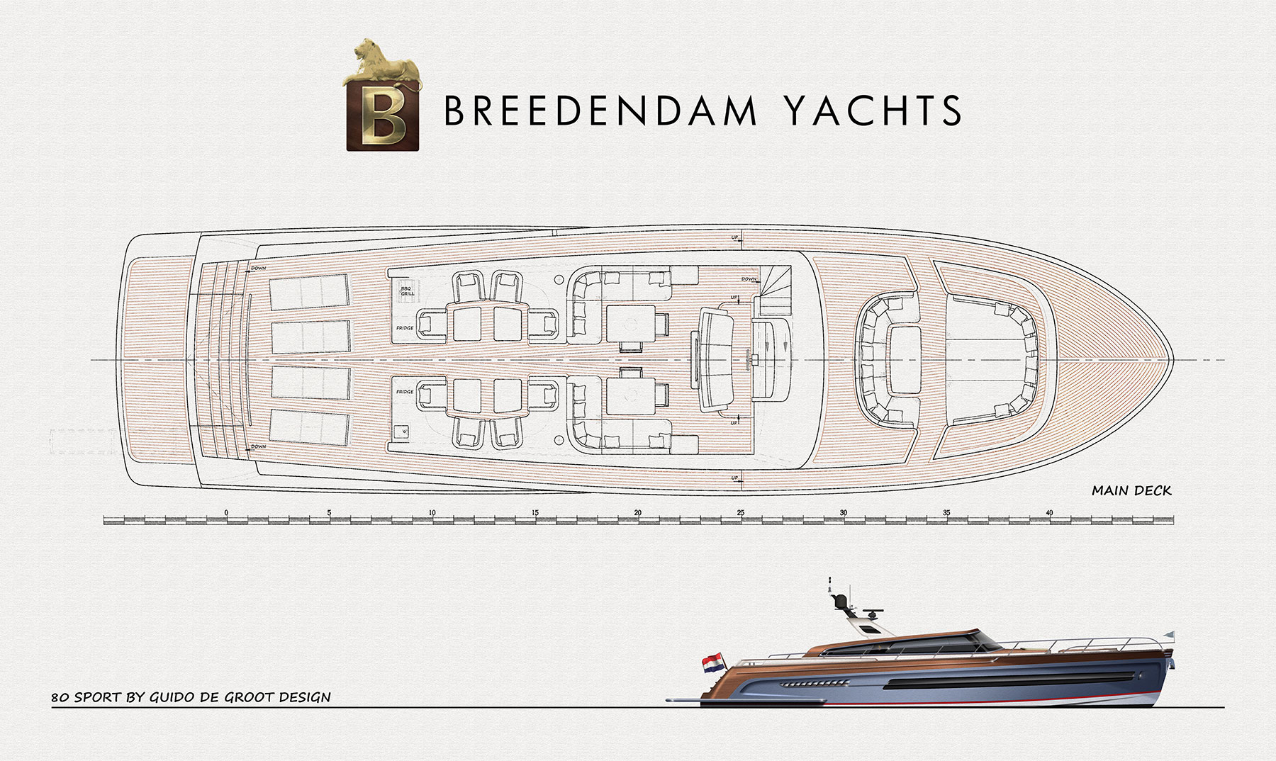 The Leeuwarden-based shipyard, Breedendam Yachts, revealed its latest superyacht concept: The 79-foot/24-meter convertible Eightzero sports yacht. Penned by long-time Breedendam collaborator, Guido de Groot – who was also responsible for designing the WW2 British Navy-inspired Breedendam Fourzero and Sixzero boats – the concept aims to “take a fresh look at how a classy gentleman’s sport yacht should look” according to her designer, by taking the lines and level of outfitting beyond what is expected from a typical large, open yacht.