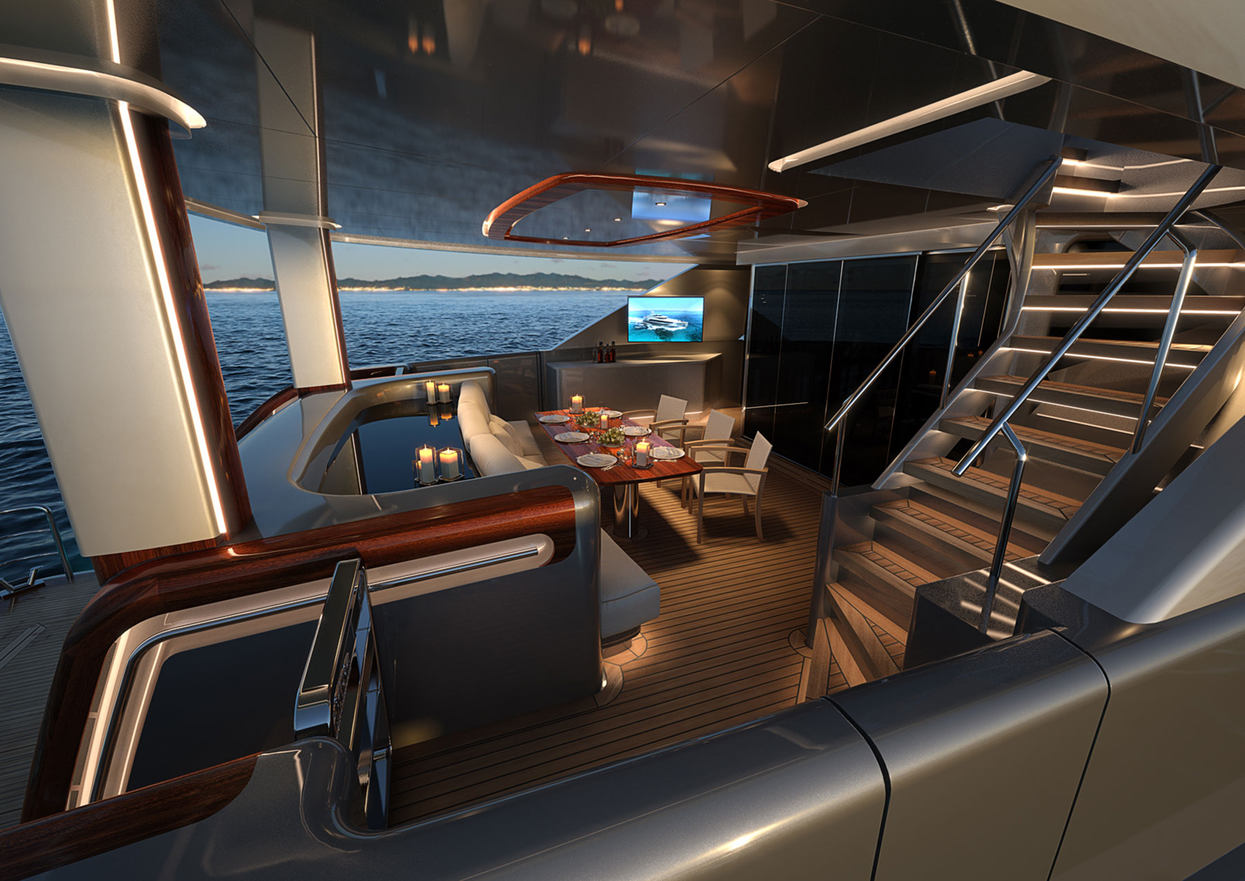 - Humphree Interceptor System, including auto trim, list and coordinated turn features to automatically correct the yacht’s trim and list, optimizing performance with programming to the specific characteristics of this yacht
