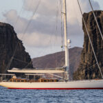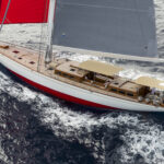 Seen from the shore, Acadia’s giant mast and sails make for a striking sight. Stand on the deck and you will sense how that visual excitement is mirrored by a phenomenal performance once the yacht is underway. The 35.60-metre keel-stepped mast and 11.40-metre boom were made in carbon fibre by Hall Spars in the Netherlands. The carbon fibre sail package supplied by Doyle and includes a mainsail, yankee and staysail, all of which can be operated from the aft cockpit, plus a brilliant red & white top-down furling Asymmetrical A3 and a stunning 580 m² A2.