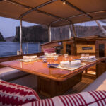 The sense of quality seamlessly continues when you step into Acadia’s interior spaces, where no expense was spared on the mod cons that make for a luxurious stay. For instance, every cabin has its own concealed air conditioning unit – just one of the ways in which the available space has been ingeniously used. The interior ambience is one of timeless elegance thanks to Hoek Design’s template of raised and fielded mahogany panels and white-painted panels above the wainscot level.