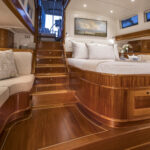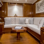 “Everything revolves around the lifestyle of the client in a bespoke interior design like this,” says Colleen Waguespack from Colleen Waguespack Interiors, who was responsible for the interior decoration. “Having worked on a number of properties for the owner and his family, our goal with Acadia was to create a design over which they would feel total ownership. Everything was very carefully thought through and the owner was more than happy to make 20 design mock-ups to get every detail right, even down to the level of the stitching on the trays. A range of modern and fresh influences have been combined with the classic and elegant detailing typical of sailing yachts. It’s a nice balance that has been crafted superlatively by Claasen Shipyards.”