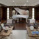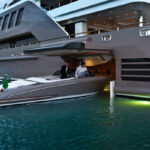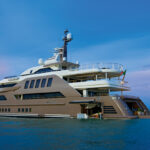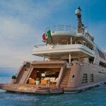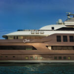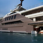 “This is not only a remarkable design feature,” says Zuccon, “but it has a symbolic value: The yacht is one—big and solid with a visual and functional continuity between all of its parts. To further enhance this concept, an unusual color for the external livery, ‘Warm Grey’ by DuPont, has been chosen to underline the yacht’s geometrical composition.”