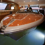 Before the guests can board the tender, the shell door to port has to open, letting the seawater in and thereby enabling the Riva Iseo 27 to rise off its cradle. It is kept in place by fender poles. The operation takes around 10 to 15 minutes. Once the garage is full, the two wave doors protecting the tender and its passengers eventually open and the tender can shove off.
