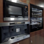 When at anchor, the place to enjoy the sea and sights is the beach club. Fold the large stern door down and the garage area turns into a comfortable 700-square-foot lounging area, a great spot where one can relax after an invigorating swim, watch the sunset or sip an aperitif.