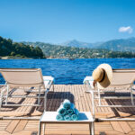 On board, guests will find numerous outdoor areas for enjoyment, including a wide Mediterranean-style sundeck, an inviting lounge area at the bow, outdoor living areas and an alfresco dining area located aft, magnificent terraces overlooking the sea, and an exclusive tender bay accessed via the lower deck. The bay forms a large open-air lounge integrated with the beach club and features a solarium, a fitness area, a hammam and a sea-water indoor pool perfect for the kids and also ideal for storing the tender while cruising.