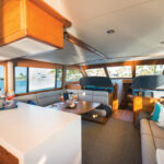 The 60’s standard layout is relatively conventional, with a salon, galley and helm station on the main deck, three staterooms and two heads below, and a flybridge up top. Within this envelope, Grand Banks added some nifty features, a few in the salon and more in the machinery spaces.