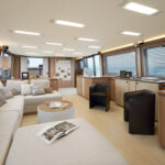 At just over 26 meters (86 feet), the MCY 86 is the fourth and largest offering to date from the Italian builder based in a state-of–the-art facility on the Adriatic coast near Trieste. It continues a corporate ethos that CEO Carla Demaria describes as “adaptive evolution,” whereby the company strives to anticipate what its international clients want in terms of products and services in a changing marketplace. A key element of this strategy has been innovative interior and exterior design that borrows styling elements from the superyacht world. Hence, the choice of Nuvolari Lenard as lead designers from the outset.