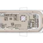 The big-boat mentality extends to the interior design overseen by Valentina Zannier, a junior partner with Nuvolari Lenard, who was careful not to over-decorate the interior. Instead, she focused on a sophisticated palette of materials based on red gum and neutral brushed oak, accompanied by subtle detailing.