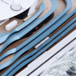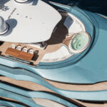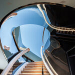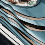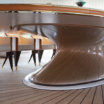 On the technical side, design was also a factor. Oceanco built 2-by-24-foot, 3.65-ton cranes so that they nested into the shape of Jubilee’s exterior’s lines. Folding bulwarks for launching the liferafts and rescue boats from the upper deck have integrated LED strip lighting and glass paneling. Aluminum and steel work achieved the curvature of the build elements, followed by application of metallic blue paint on the exterior’s complex shapes.