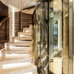 Rupert PeaceThe interior is finished in an abundance of marble, including a four-story floating staircase. (To handle the weight, Jubilee’s hull structure was augmented with high-strength steel.) Sorgiovanni says his inspirations for the interior design were art deco and the casbah atmosphere of Casablanca. Decorative overheads are important in Middle Eastern culture, and on board Jubilee, as well; this is particularly noticeable in the highly ornate salon ceiling. Another interesting ceiling application is found on the main deck aft. The overhead is one flush aluminum surface covered with a custom contemporary pattern with LED down lights. Lobanov says Oceanco was the first to construct such an overhead without seams or panels.