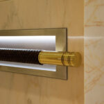 “We integrated nearly 6,561 feet of LED strip lighting in the exterior,” says Piet Albas, Oceanco project manager. “This strip lighting wraps the perimeter of the superstructure in five locations per deck. All are recessed into the construction. These highlight the faux decks at nighttime and negate the need for any deck lighting, and also provide sufficient light to double as emergency lighting.”