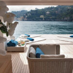 VSY launched its largest yacht so far, Stella Maris, in July 2012. She anchored off Port Hercule in Monaco for invitation-only visits during the Monaco Yacht Show with the owner’s blessing, even though not everything was fully in place yet. Something that was, though, and was the talk of all who boarded Stella Maris: the glass-enclosed gardens of real houseplants on different decks. Walls of glass also line the main and upper salons and the owner’s suite (on a private owner’s deck) as well. The owner was inspired by a living-space concept, based on an innovative architectural vision. Stella Maris gets her exterior looks from the collaboration of Espen Øino and Laurent Giles Naval Architects, while Reverberi Interior Design created the interior.