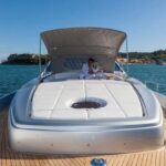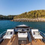 Let’s be clear: This is 60 tons of high-energy missile, with 4,870 horsepower packed into the stern, hooked up to ZF SeaRex surface drives. In a straight line, this oceangoing ICBM is capable of more than 46 knots. To make it turn corners, you waggle the little stick. Just make sure you don’t lesnerize as you do so.