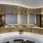 The interior design by Achille Salvagni provides a more feminine and delicate counterpoint. In his third collaboration with Rossinavi, the Rome-based architect integrates the complex yet calming signature style of his high-end residential work into a superyacht context by embracing creative solutions and avoiding overstatement.
