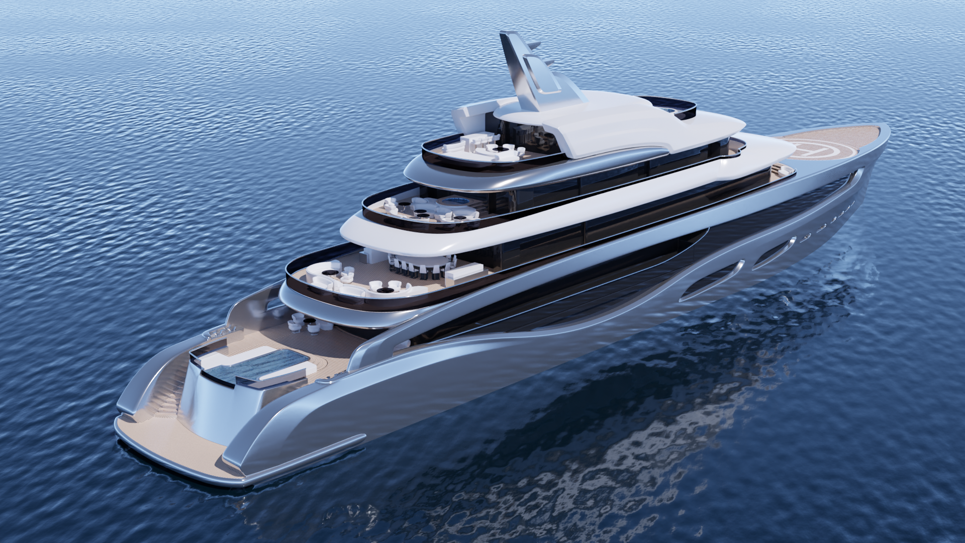 Team For Design – Enrico Gobbi designed Silver Ocean to have a sleek, pure line with dynamic elements, so it appears to be in motion, even when still. Drawing inspiration from aviation and automotive design, as well as fluid natural elements, it has an elusive look, with the overhangs in particular enhancing this perception.
