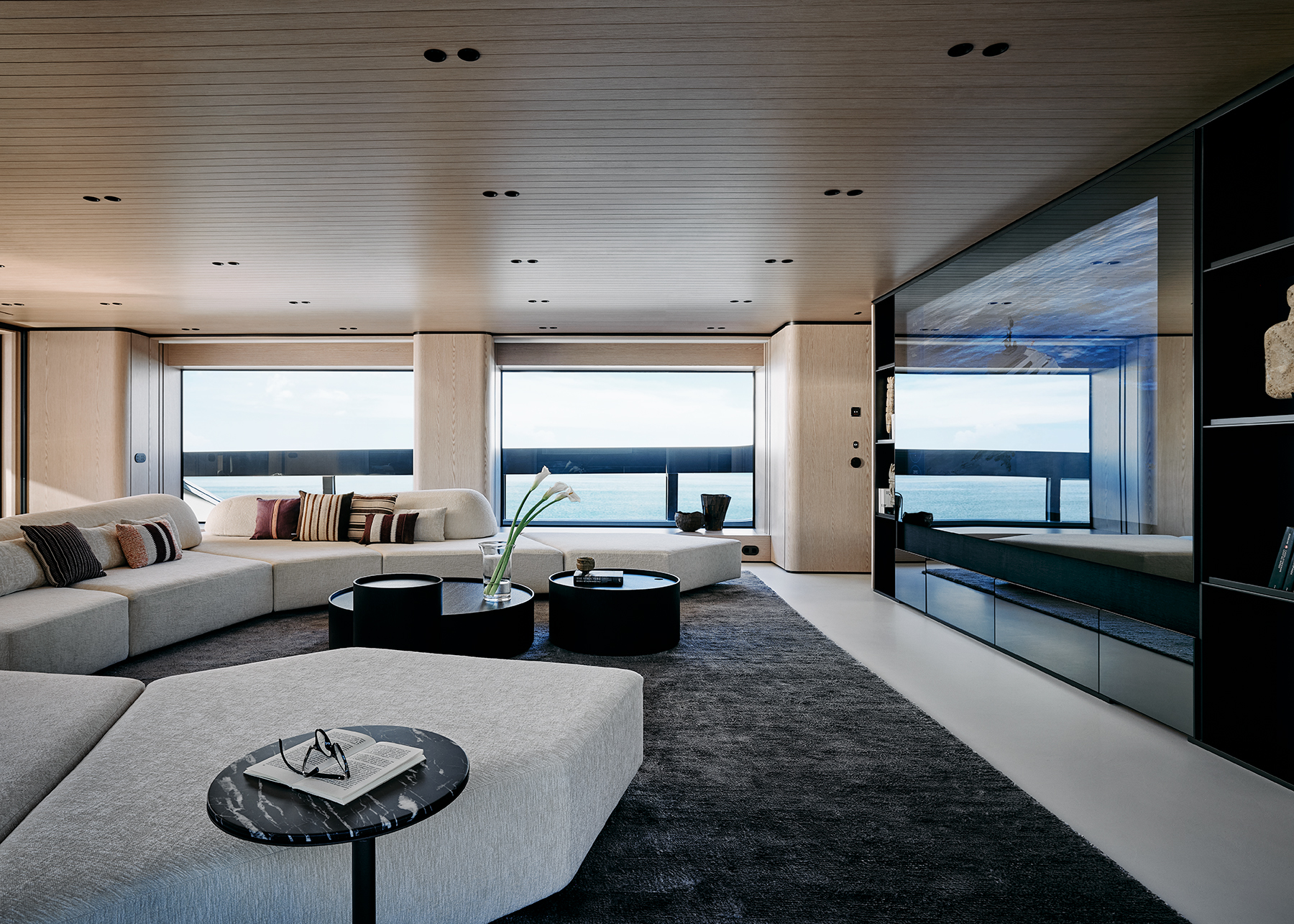 “The owners were very clear that they wanted a modernist, light-filled interior that combined beautifully designed furniture with selected classic pieces, and the inside with the outside,” Lissoni says. “The language of architecture is the interaction between exterior and interior, and for me, Virtuosity is a floating villa.”