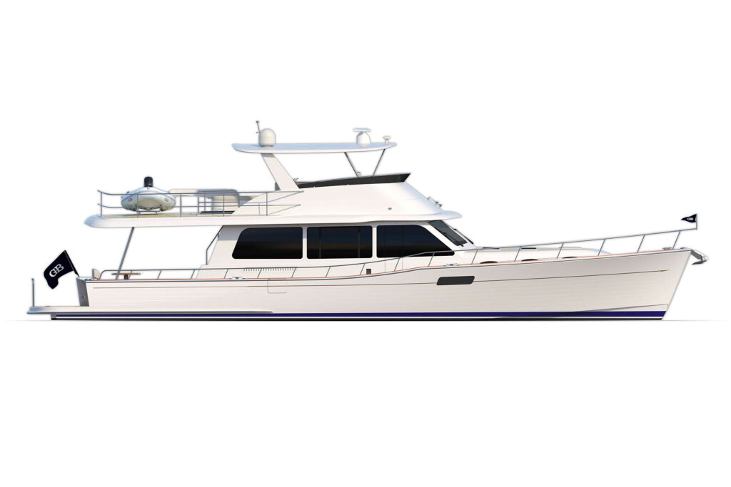 The new Grand Banks 62 reflects the company’s extensive experience building oceangoing cruising yachts designed for long passages. Wide side decks with substantial bulwarks allow for easy and safe access between the bow and stern underway or while docking, and the starboard side door is positioned directly at the lower helm to ensure easy line handling for the cruising couple.